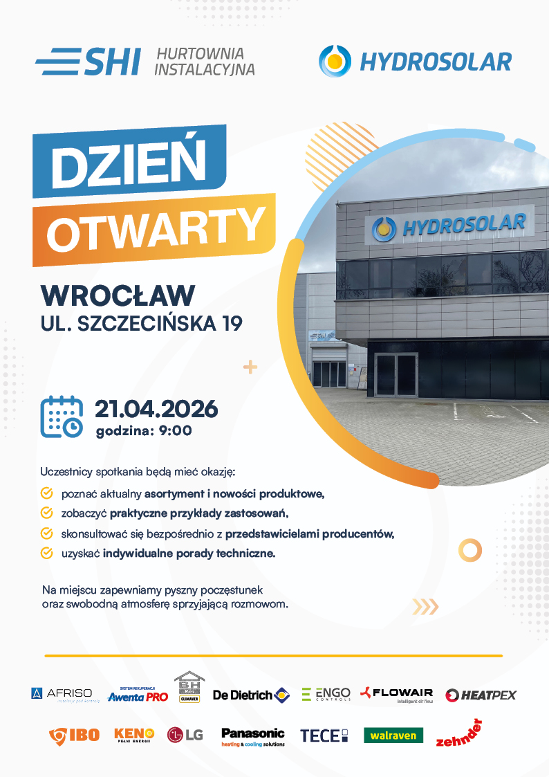 Dzień otwarty z Afriso, Awenta, BH-RES, De Dietrich, Engo, Flowair, Heatpex, IBO, Keno, LG, Panasonic, TECE, Walraven, Zehnder - SHI Szczecińska Wrocław